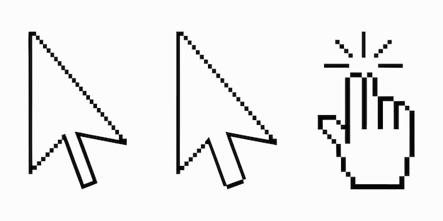 Pixel Cursor Icon Set Retro computer pointer and hand symbols for web design UI or presentations